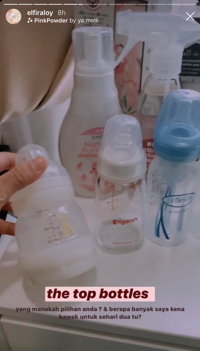 Isu tersebut timbul selepas Elfira meminta pendapat mengenai jenis botol susu yang patut dibawa ke hospital memandangkan dia mempunyai beberapa pilihan.