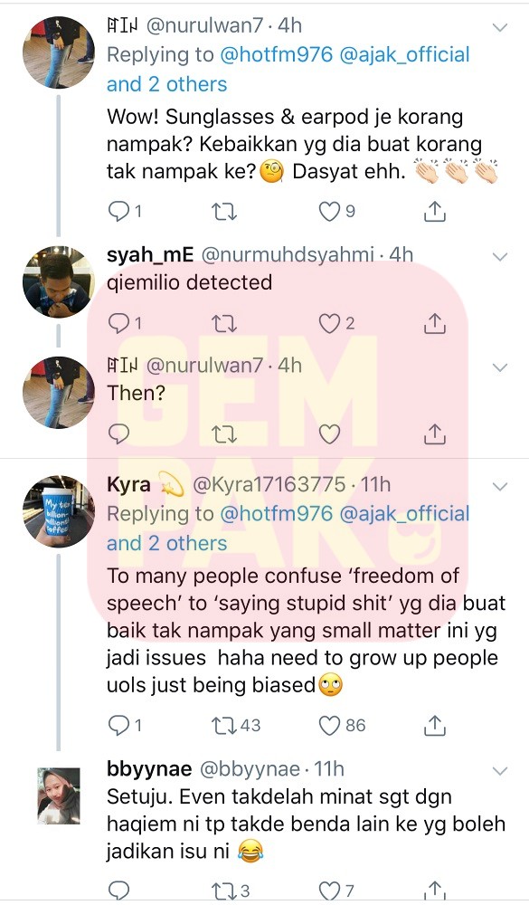 Ada juga peminat Haqiem yang tampil mempertahankan penyanyi kesayangan mereka.