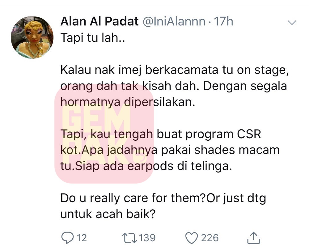Memakai kaca mata hitam dan 'airpods' ketika menziarahi rumah Abang Zul, rata-rata netizen berpendapat penampilan Haqiem tidak kena dengan acara yang dihadirinya.