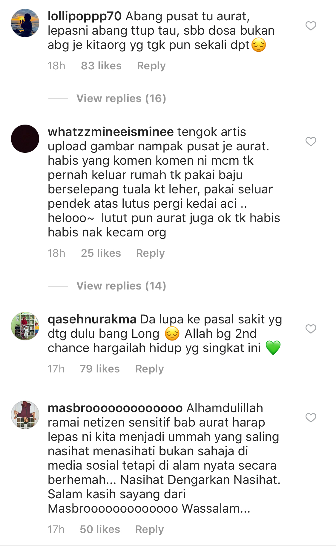 Di sebalik komen positif, ada juga netizen yang meninggalkan komen menegur Nazim berkenaan dengan soal aurat.