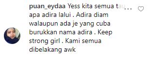Menerusi ruangan komen, rata-rata pengikutnya berharap agar Adira tabah mengharungi dugaan rumah tangga.