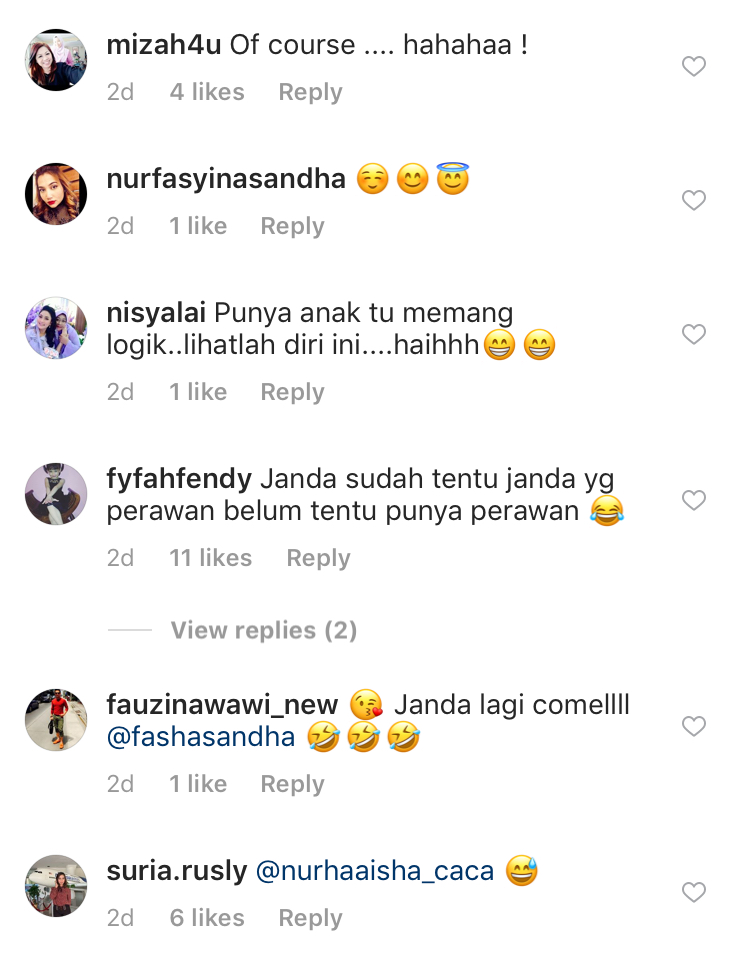 "Tiba-tiba ramai orang letak gambar ni dan jadi viral... Ternyata kat sini yang paling comel adalah janda. Macam mana ni? Helpppp #repost," tulis Fasha.