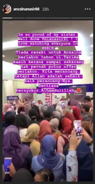 Anzalna berkongsi video sekitar sesi 'meet and greet' pelakon drama bersiri Kan Kukejar Cinta Kamu yang disertai oleh adiknya, Mia Nasir.