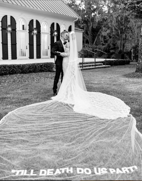Malah, perkataan “TILL DEATH DO US PART” turut disemadikan di bahagian hujung kain layah Bieber dengan corak tulisan yang sinomin dengan rekaan Off-White.