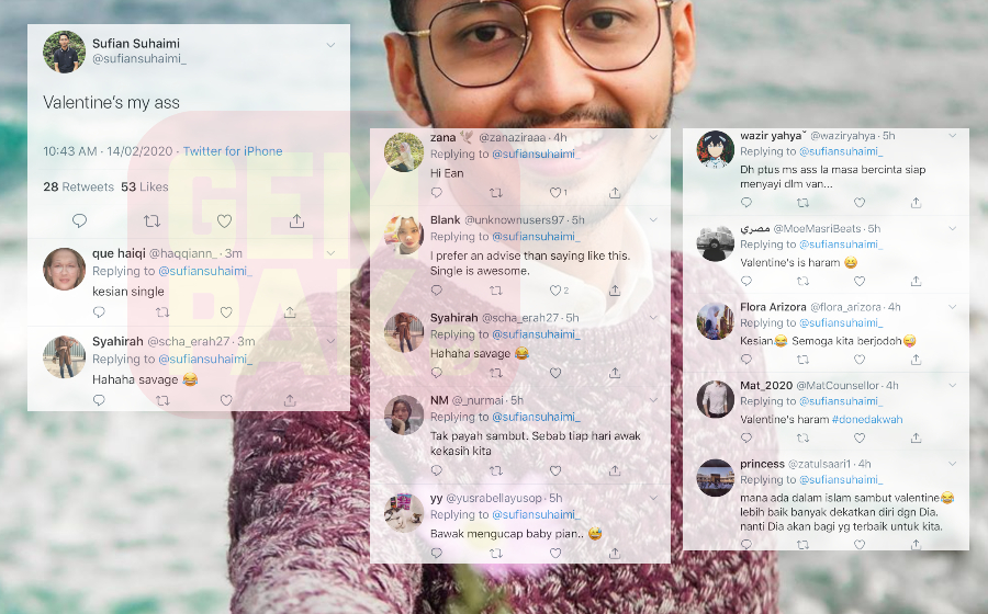 Penyanyi Sufian Suhaimi berdepan sindiran netizen gara-gaar melayangkan tweet berkenaan Hari Memperingati Kekasih (Valentine's Day).