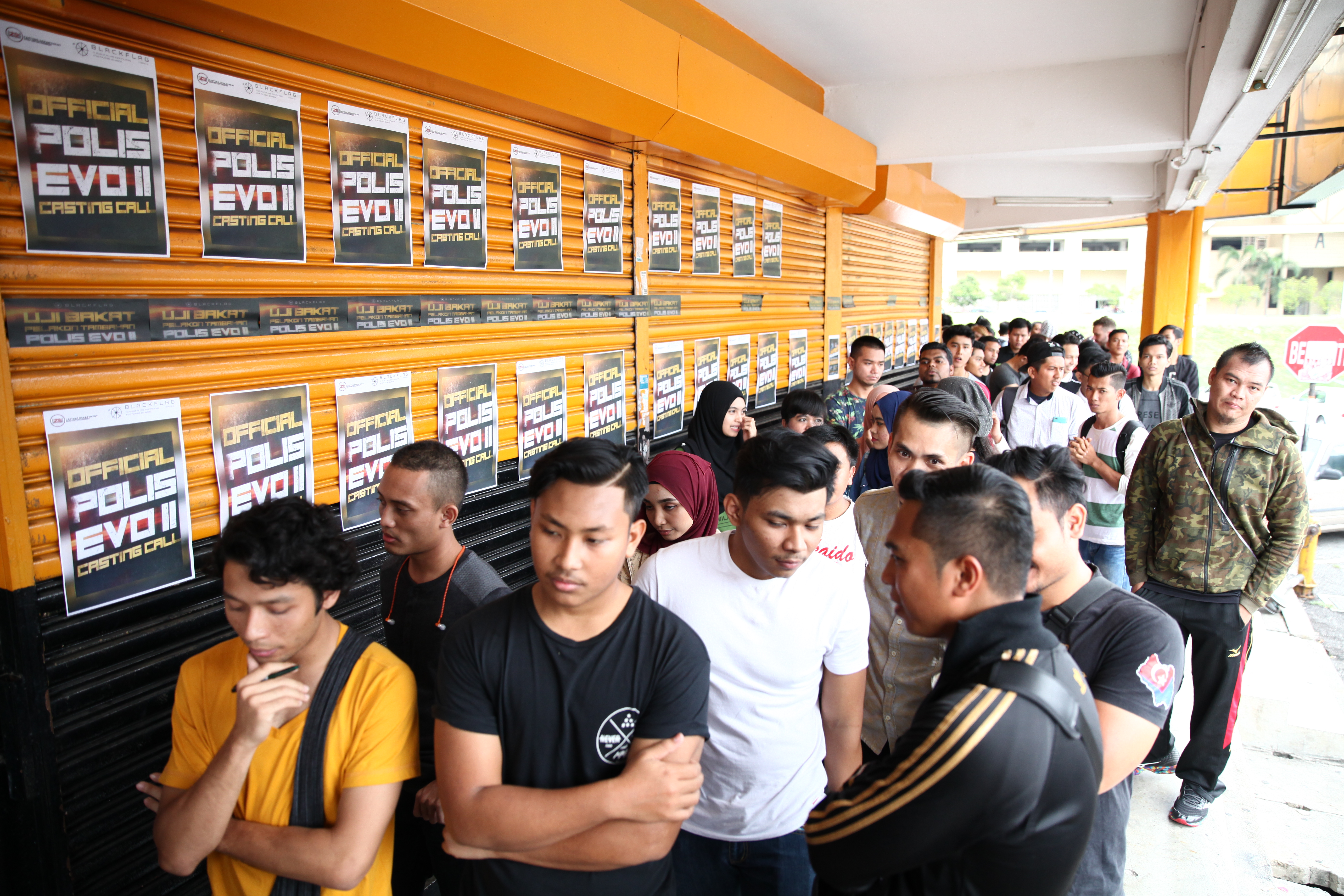 Seramai lebih 1500 orang hadir untuk mencuba nasib menyertai ujibakat pencarian pelakon tambahan dalam filem terbaharu Polis Evo 2.