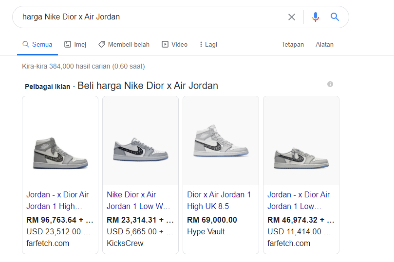 Di ruangan komen, rata-rata pengikut menyatakan harga kasut jenama Nike Dior x Air Jordan itu mencecah lebih daripada RM40,000 sepasang.