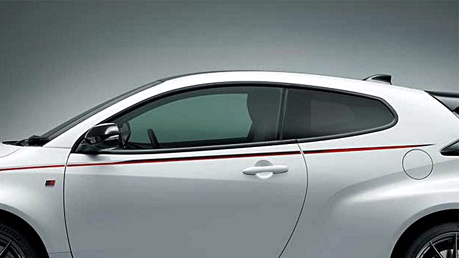 Komponen-komponen tersebut boleh dipadankan beberapa perincian lain seperti jalur merah hitam pada bahagian sisi, pelindung pemegang pintu kemasan ala gentian karbon, penutup injap tiub logo ‘GR’ serta pemegang nombor plat CFRP lengkap dengan set skru yang juga dihiasi dengan logo divisyen sukan permotoran itu.