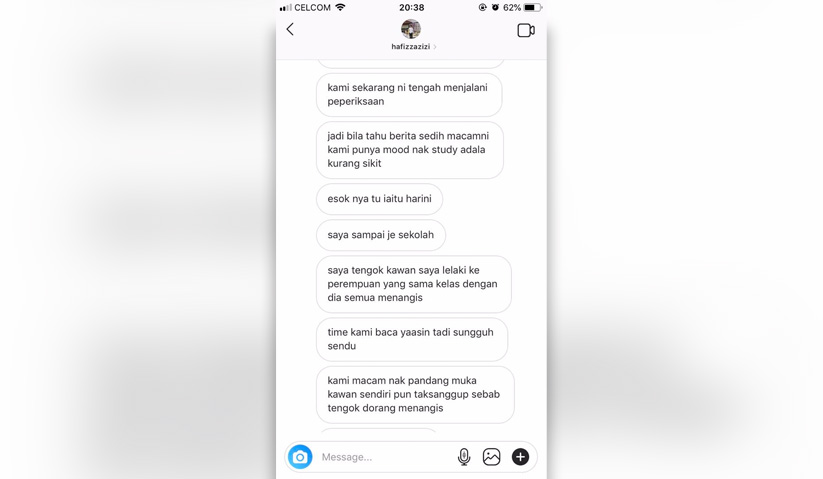 Seorang lagi kawan baik Allahyarham, iaitu Muhammad Hafiz Azizi Azlee mengakui terkejut sewaktu menerima khabar pemergian Muhammad Haziq pada Rabu malam,