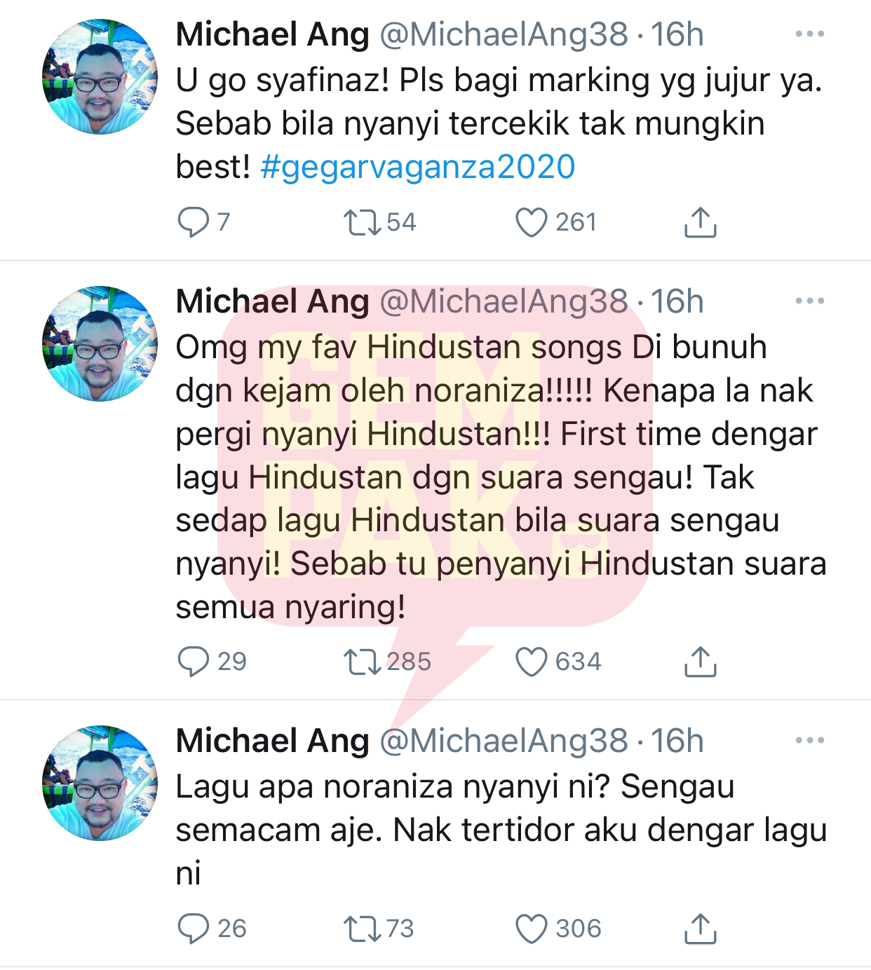 Michael terdahulu menciap beberapa Tweet yang tidak berpuas hati dengan kualiti persembahan dan menyifatkan nyanyian Kak Ani 'membunuh' lagu Hindustan.