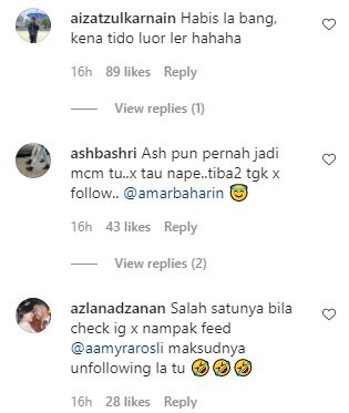 Bagaimanapun, lain pula kisahnya dengan pelakon Amar Baharin yang ‘bingung’ selepas mendapati dia tidak lagi mengikuti isterinya di Instagram baru-baru ini.