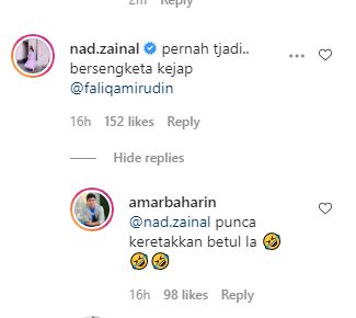“Pernah terjadi, bersengketa kejap @faliqamirudin,” komen Nad.