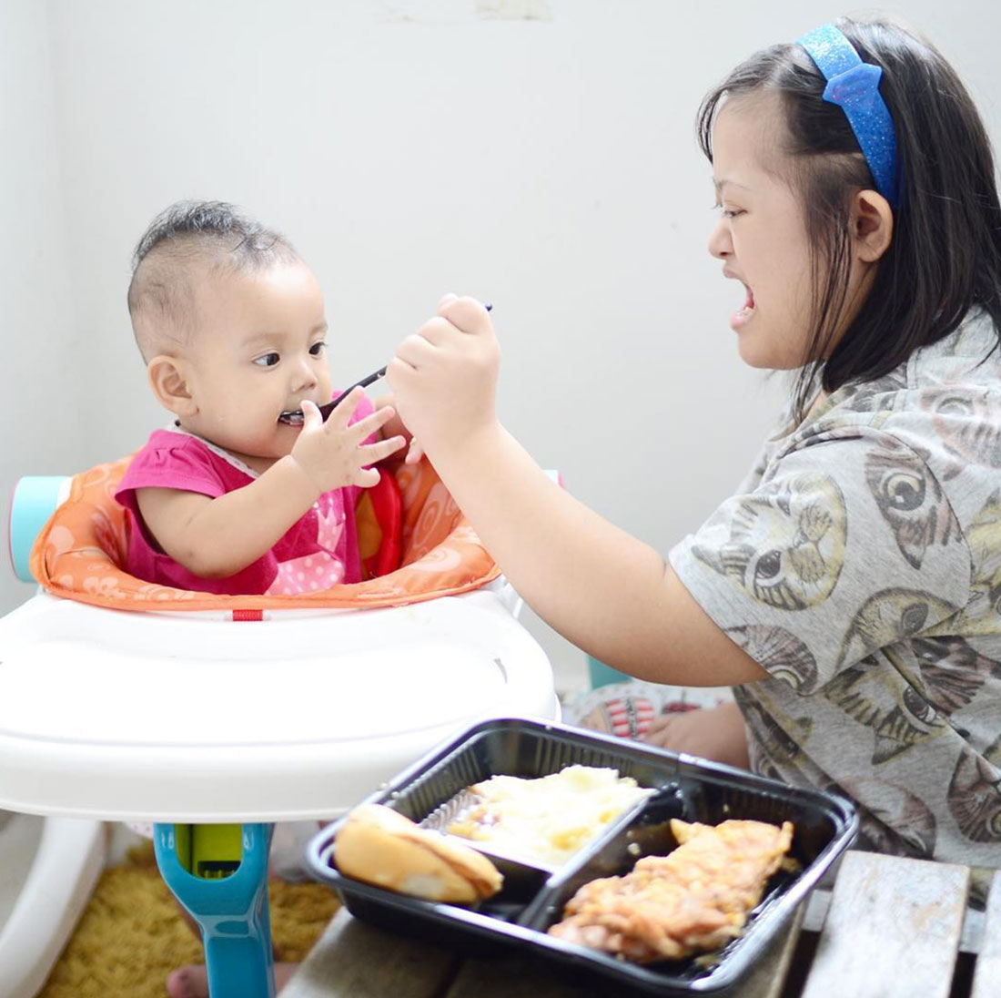 Kata Bengah: Orang yang tahu bagaimana insan istimewa (down syndrome) pasti akan ingat mereka ini bahaya, agresif dan merbahaya. Ini Bengah nak cerita tentang @afiathorrr sikit, dikenali sebagai Cik Pia… Sangat penyayang dan pengasih kepada kanak kanak dan budak kecil dari dia. Cik Pia juga tahu cemburu kalau dia tak dapat layanan macam baby. Jadi… Bila Cik Pia dengan Bengah, dia akan jadi baby tapi bila dia dengan baby pula? Cik Pia nak jadi Mak Cik Yang Penyayang pulak ? dalam keluarga dia tetap baby dan selama hayat dia tetap selamanya baby... Dalam gambar ini pon dia tahu baby Maisara tak boleh makan benda keras, so Cik Pia suapkan kentang lenyek. Cik Pia tunjuk kasih sayang dia dan kongsi sedikit makanan kegemaran beliau, Chicken Chop.