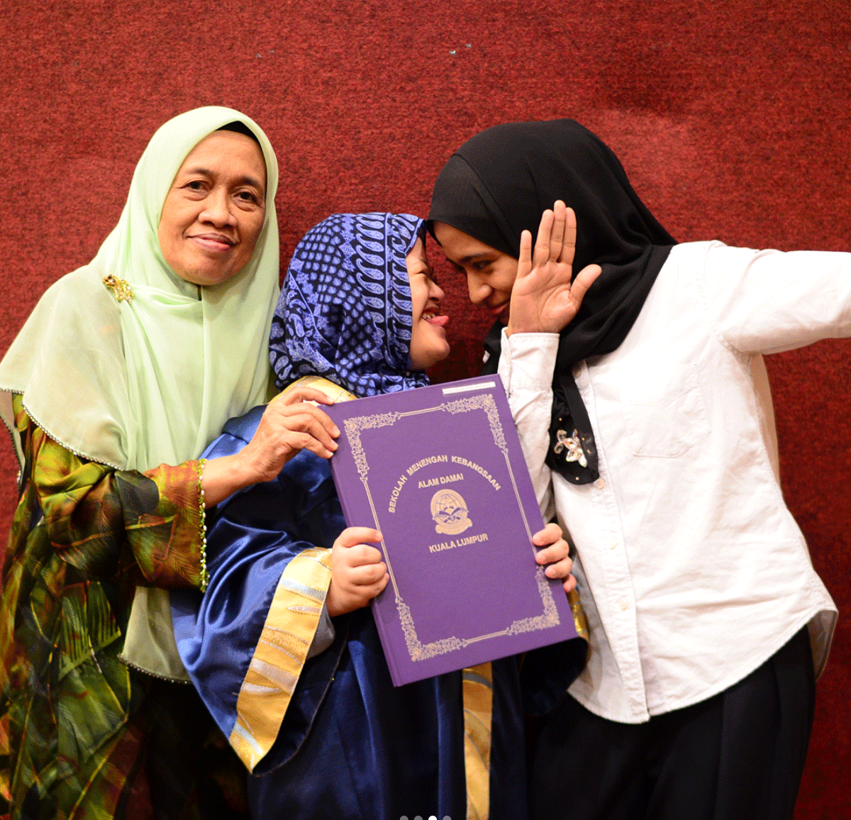 "Inilah detik yang terakam seawal pagi masa majlis bermula dan masa penganugerahan kepada graduan-graduan istimewa Kelas Pendidikan Khas. Jelas sebutan dari menunggu giliran ternanti pengumuman nama Cik Pia... Afiatul Salsabiila. Dan rakan-rakan sekelas dia. Abang bangga dengan kesemuanya... *kesat peluh kat dahi* seperti mengambil segulung ijazah sarjana muda-mudi cikebum cikebum. Tiada reaksi yang bukan-bukan daripada Cik Pia di pentas dan alhamdulillah syukur semua dipermudahkan-Nya. Doakan yang baik-baik kepada mereka yang istimewa ni ya."