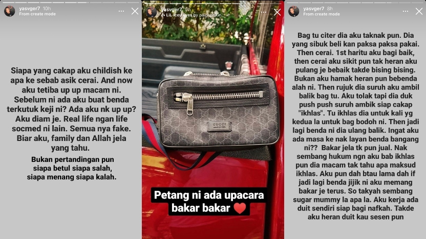 "Bukan aku hairan pun bebenda alah ini. Kemudian rujuk dia suruh aku ambil balik beg tu. Aku tolak tapi dia asyik paksa-paksa suruh ambil siap cakap ikhlas.