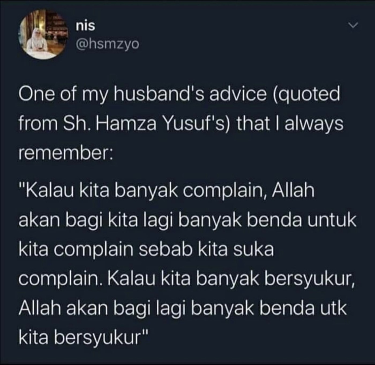 Memadai dengan patuh kepada suruhan-Nya dan tinggalkan segala larangan-Nya. Perbaiki hubungan sesama manusia, ikhlaskan diri untuk memberi apa yang dimiliki serta rajinkan diri melakukan pelbagai amal ibadat lain. Perlahan-lahan, cubalah. Tiada paksaan. Syukur itu menerbitkan keikhlasan dan keluhuran hati bagi sesiapa yang benar-benar memahami. Insya-Allah, Dia yang Maha Melihat akan mengganjarkan pahala berlipat ganda kepada hamba-Nya yang ikhlas beribadat kepada-Nya.