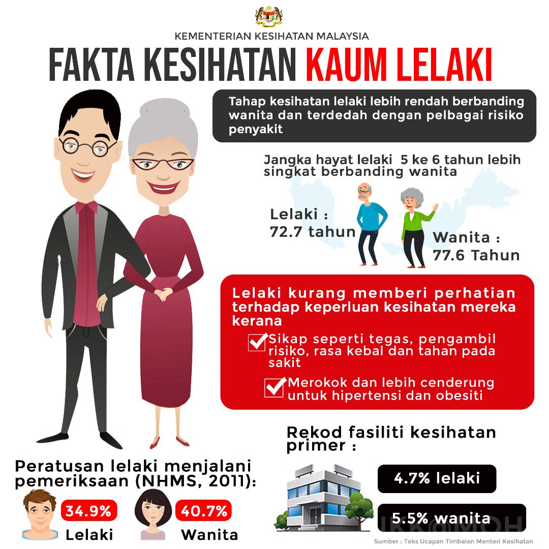 Lelaki sinonim dengan sifat kental, kuat dan sukar meluahkan ekspresi lebih-lebih lagi jika ia berkaitan dengan isu kesihatan. Malu? Mungkin, kerana kekuatan bagaikan satu frasa yang akrab dengan kaum Adam. Mungkin kerana itulah juga sukar dan payah sekali kita lihat lelaki menangis. Dan kalau mereka menangis sekalipun, pastinya ia benar-benar menyentuh hati, menjentik perasaan sekali gus meruntuhkan tembok kelelakian yang mereka bina sendiri. Kalau sakit sedikit, apalah sangat. Tak perlu dilayan, mungkin itu andaian singkat mereka. Dan mengapa diuar-uarkan bulan ini istimewa lagi penting buat datuk, bapa, abang, adik, suami atau rakan lelaki kita?