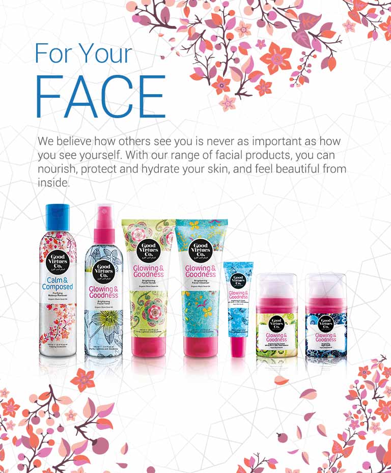 Bersesuaian dengan konsep yang diketengahkan Good Virtues Co. iaitu Celebrate Your Noor, pelbagai rangkaian produk yang sesuai untuk semua jenis kulit boleh anda dapati.