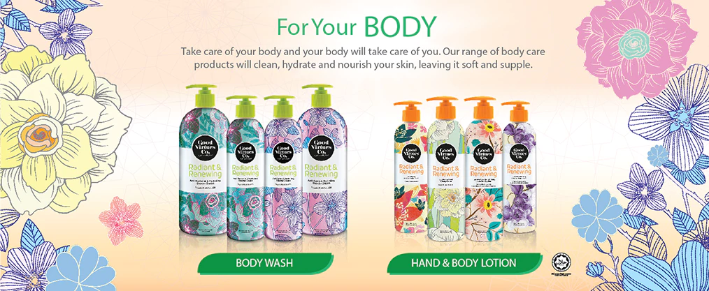 Bagi yang tercari-cari produk penjagaan kulit badan yang sesuai, Good Virtues Co. juga mempunyai krim mandian anti-bakteria dan anti-penuaan.