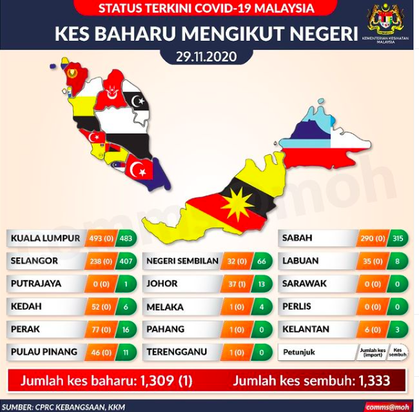 Berikut status terkini COVID-19 setakat 29 November 2020: