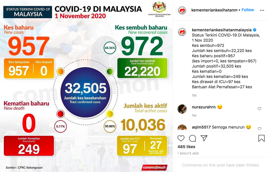 Status Terkini COVID-19 Di Malaysia: 1 Nov 2020