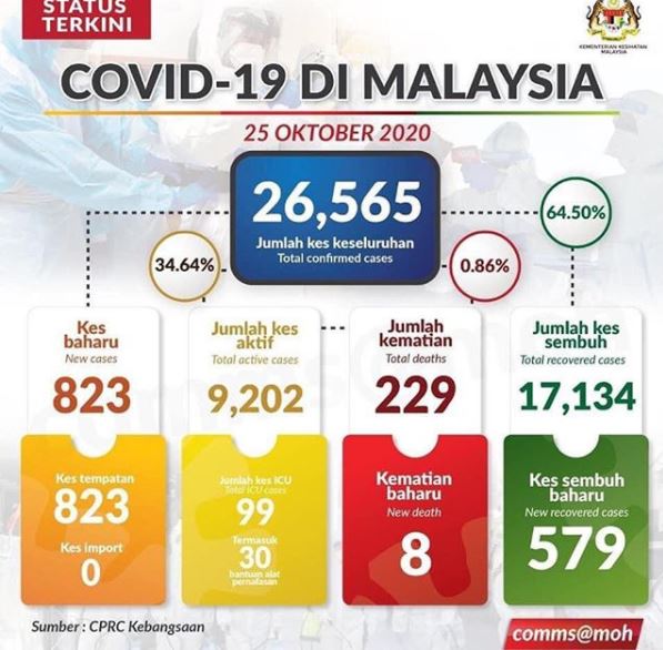 Sehingga kini, negara sudah mencatatkan sebanyak 26,565 kes setakat 25 Oktober 2020.