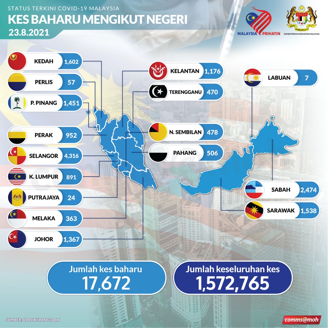 Menurut Kementerian Kesihatan Malaysia (KKM) jumlah kes kumulatif pula sebanyak 1,572,765 kes direkodkan.