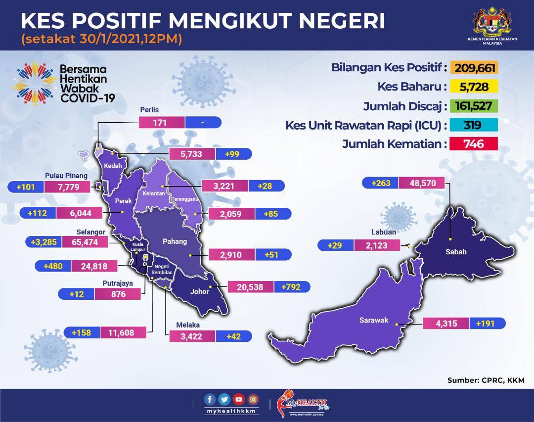 Kes sembuh pula sebanyak 3,805 menjadikan jumlah keseluruhan sebanyak 161,527.