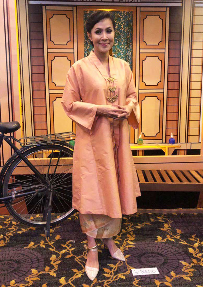 Pelakon senior ini mengenakan kebaya pendek rona ungu pekat yang katanya pemberian kawan baiknya, Anne Abdullah dari RCKW. Sederhana dengan padanan dokoh dan subang bulat.