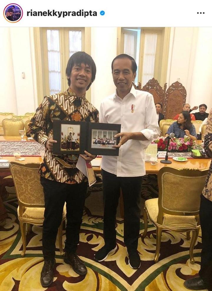 Ikut meramaikan doa ultah buat Jowoki adalah vokalis d'Masiv, Rian Ekky Pradipta mengunggah foto bersama Jokowi saat bertandang ke Istana Negara.