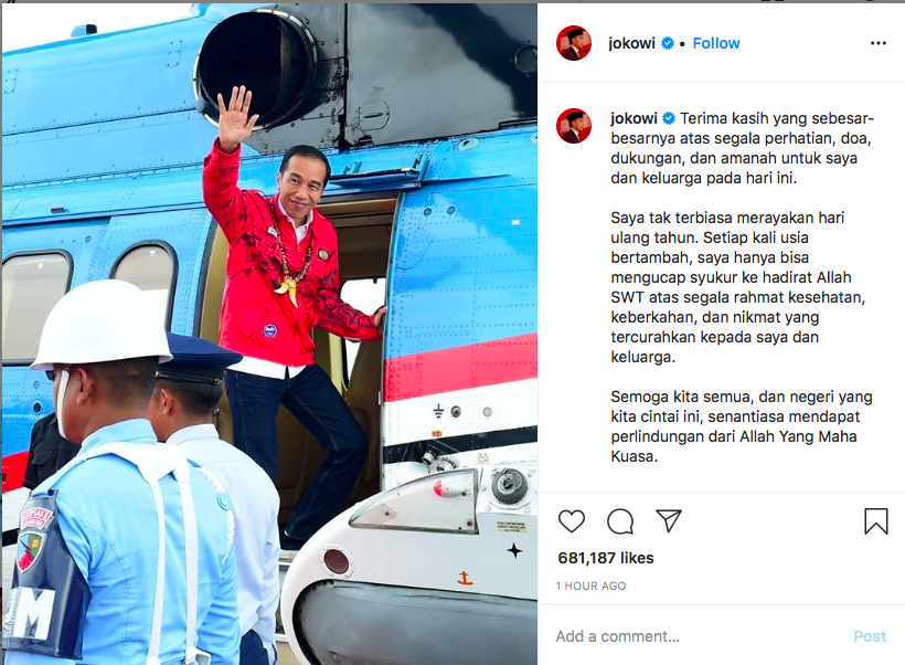 Namun lewat akun Instagramnya, @jokowi, ia mengaku tak biasa merayakan ulang tahun.