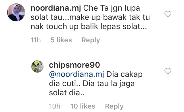 Namun Che Ta tidak mendiamkan diri apabila membalas ringkas dengan perkataan “cuti” iaitu maksudnya sedang datang bulan