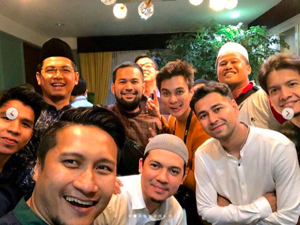 Selain Adrian Maulana, teman artis lain yang akrab dengannya seperti Irwansyah, Arie Untung, Teuku Wisnu dan Dimas Seto turut kelihatan dalam siri foto pengajian yang diunggah Raffi dalam akun Instagramnya.