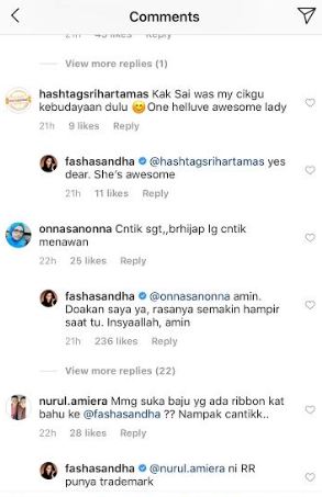 Lebih menarik perhatian, seorang netizen mencadangkan Fasha untuk berhijab dan dia sendiri membalas komen individu terbabit.