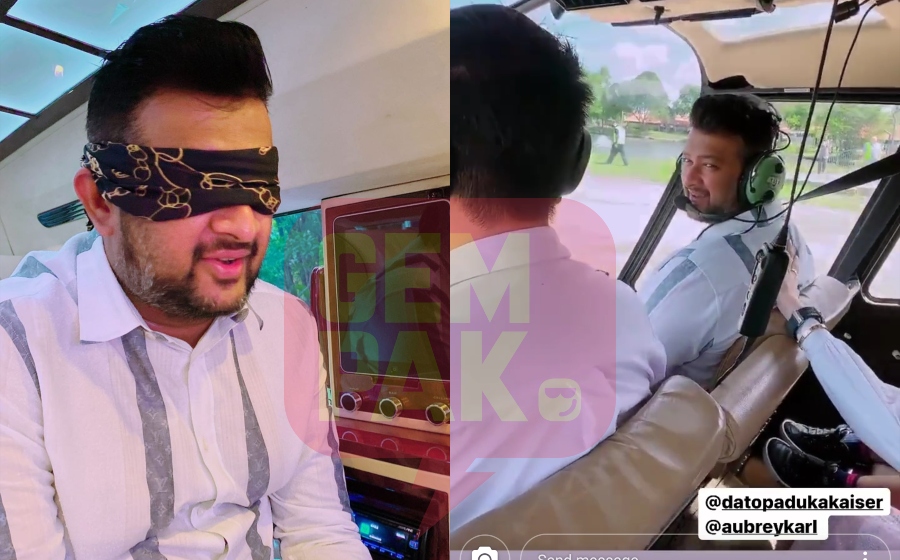 Eina yang cuba membuat kejutan tersebut bertindak menutup mata suaminya terlebih dulu sebelum tiba ke lokasi bagi menaiki helikopter.