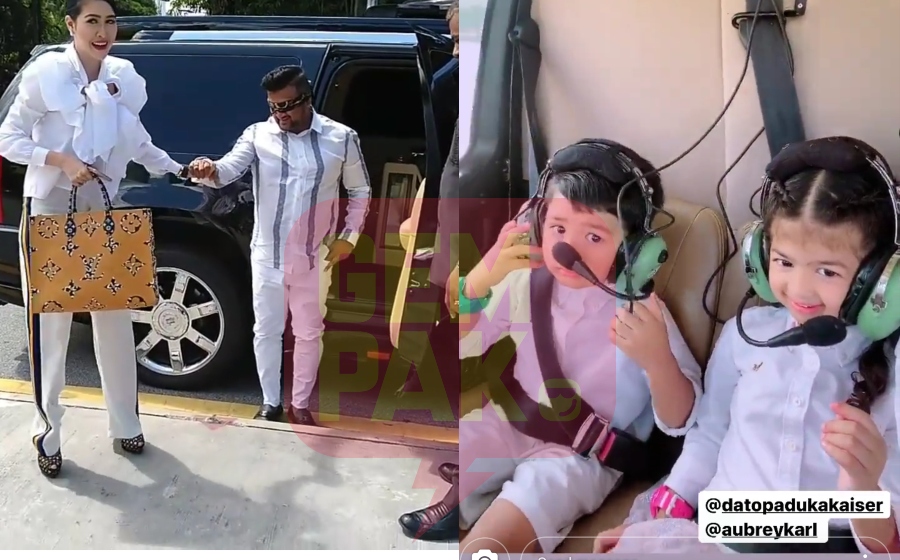 Pelakon filem Ratu The Movie itu turut membawa anak kembarnya, Karl Kareef dan Arianna Aubrey, yang berusia empat tahun bersama-sama menaiki helikopter.