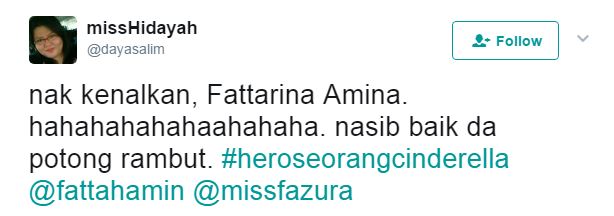 Kepada peminat, gunakan hashtag #HeroSeorangCinderella untuk berinteraksi mengenai drama bersiri ini di laman sosial.