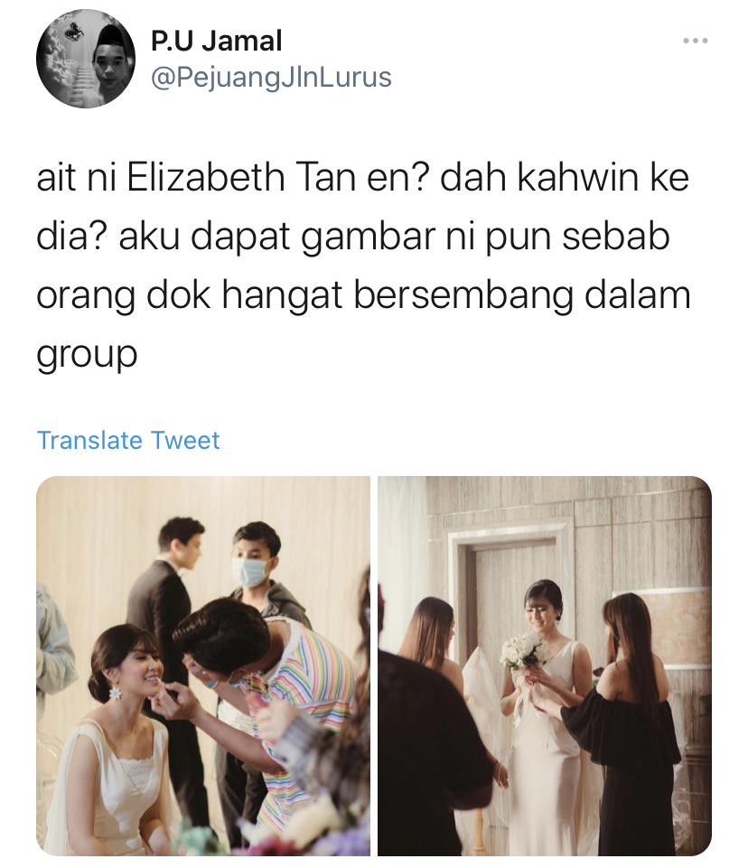"Ait ni Elizabeth Tan en? Dah kahwin ke dia? Aku dapat gambar ni pun sebab orang dok hangat bersembang dalam group," tulisnya.