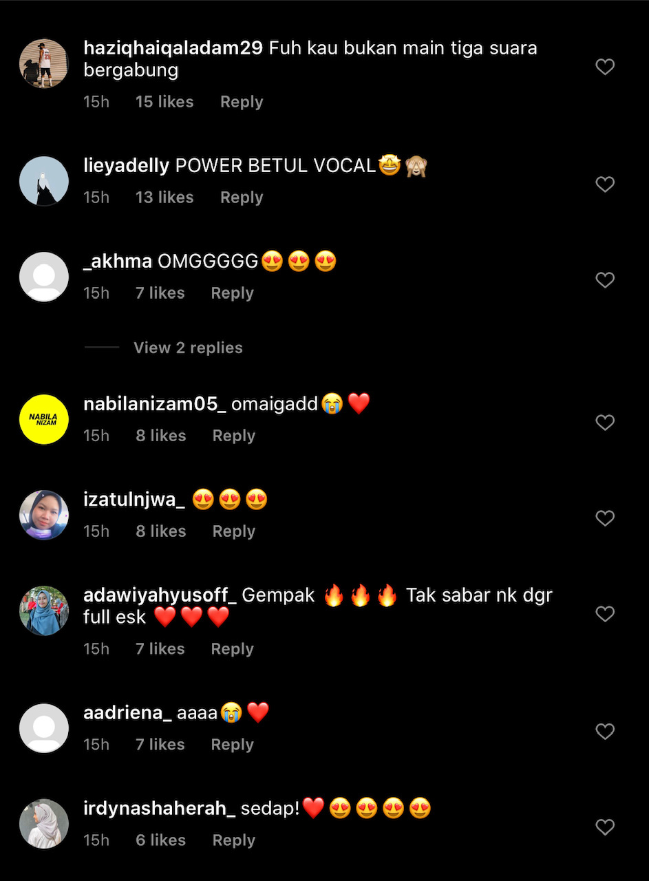Hasil tinjauan Gempak di ruang Instagram, rata-rata wargamaya dan rakan selebriti suka dengan hasil gabungan tiga penyanyi bersuara jantan ini.