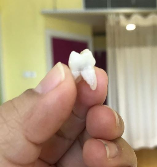 Bahkan, Tini turut berkongsi gambar gigi anaknya yang berjaya dicabut.
