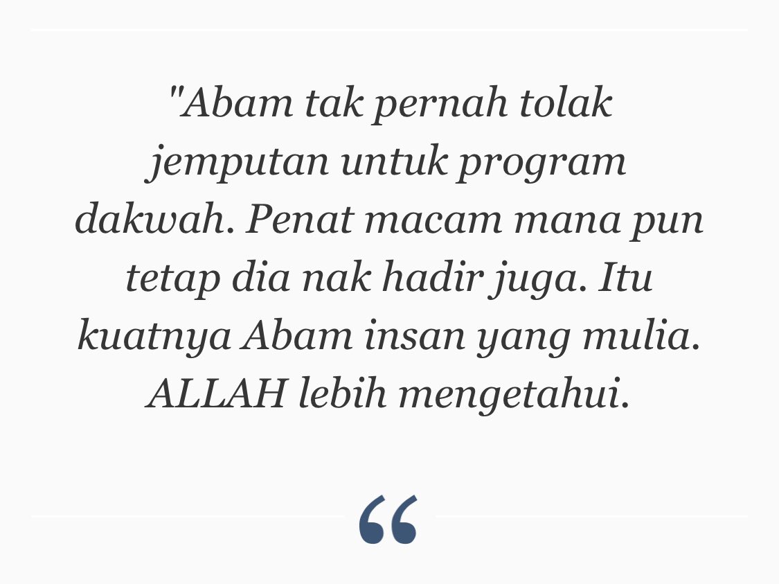 Yang paling penting, kita yang masih hidup ni, contohilah segala kebaikan-kebaikan beliau.