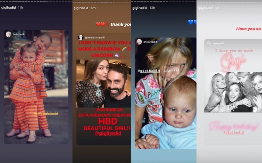 Antara insan rapat yang memberi ucapan adalah Anwar Hadid, Bella Hadid, Taylor Swift dan pereka fesyen Giambattista Valli.