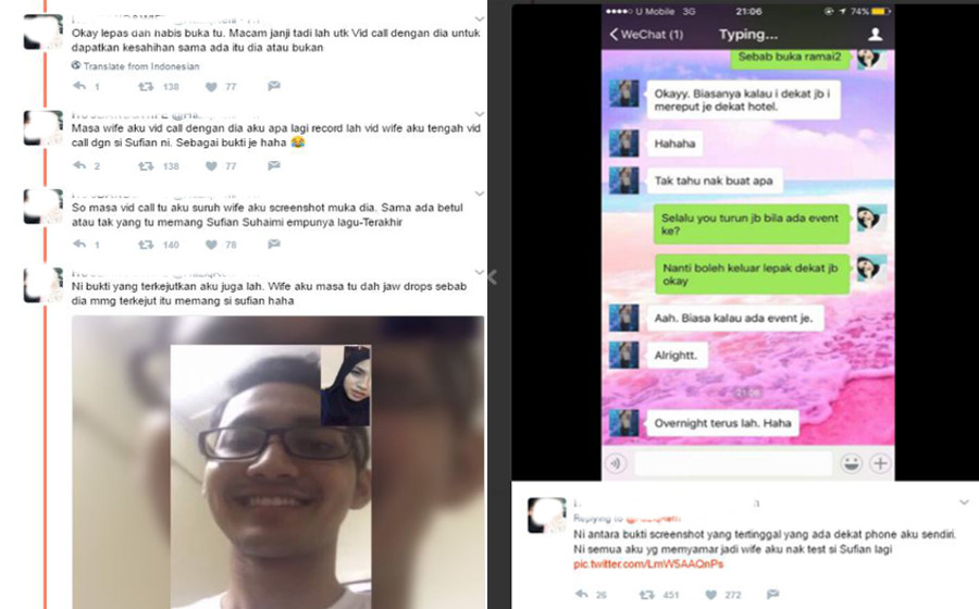 Selepas memuatnaik foto Sufian dan perbualan yang berlaku di antara penyanyi tersebut dan 'isterinya', lelaki tersebut menampilkan video sembang sebagai bukti.