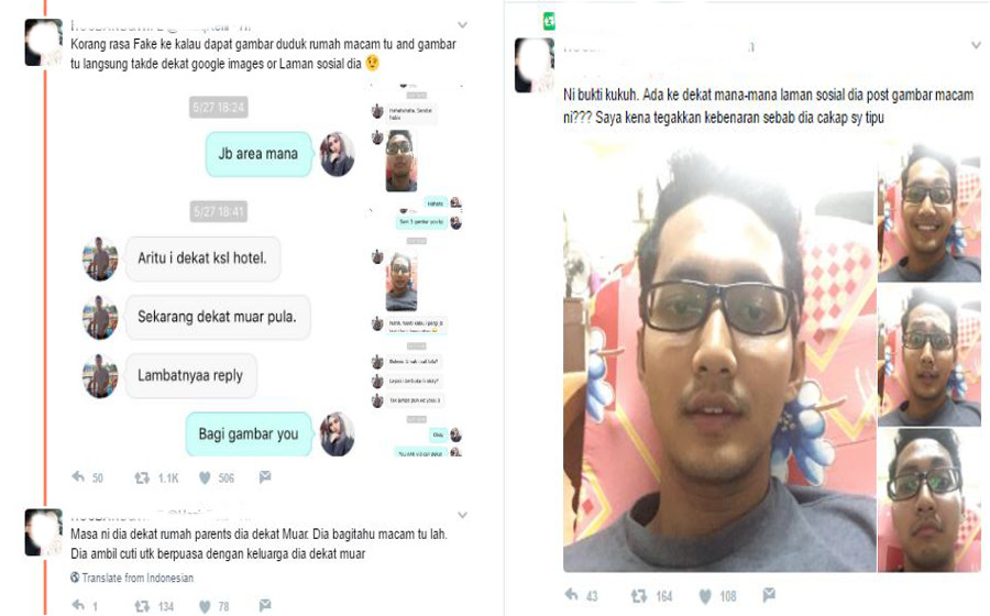Bagaimanapun lelaki tersebut terkejut selepas ‘Sufian Suhaimi’ menghantar foto-fotonya menerusi ruangan sembang.