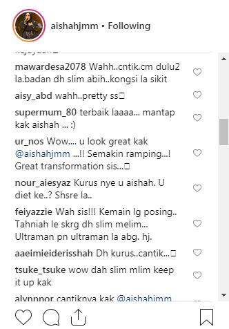 "Wow you look great Kak Aishah, semakin ramping, great trasformation!" tulis netizen.