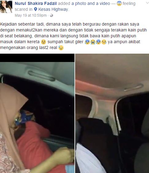Menerusi video yang tular di media sosial, dua orang wanita sedang bergurau bersama rakannya dan sempat mengusik dengan mengatakan ada hantu di tempat duduk belakang kereta.
