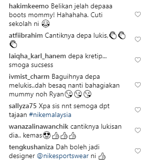 Menerusi entri di Instagram (IG), Rita berkongsi bakat anaknya yang sering melukis gambar kasut bola setiap hari.