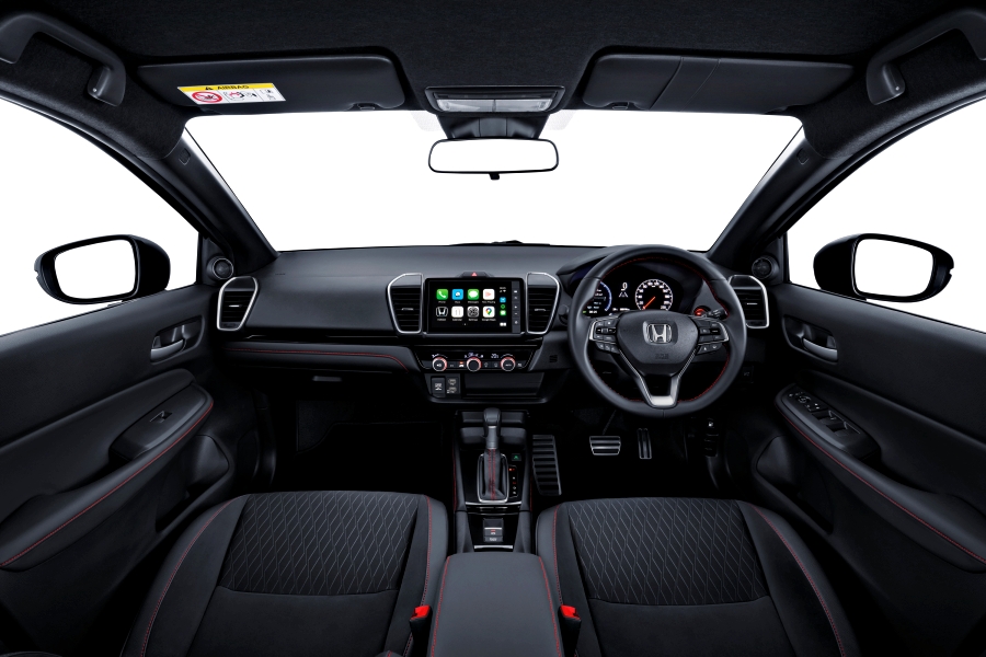 Sebagai tambahan, varian ini juga hadir dengan sport pedal pads yang memberikan rasa lebih sporty. Varian RS e:HEV juga dilengkapi tempat duduk dibalut dengan material Ultrasuede bersama jahitan benang merah pada bahagian dalamannya.
