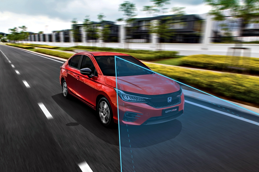 Untuk meningkatkan pakej City RS e:HEV, ia bakal hadir dengan ciri keselamatan termaju paling lengkap dalam segmen B iaitu Honda SENSING. Sistem yang canggih itu menggunakan kamera hadapan sudut luas untuk mengenal pasti halangan di atas jalan raya sepanjang pemanduan pada waktu siang dan malam.