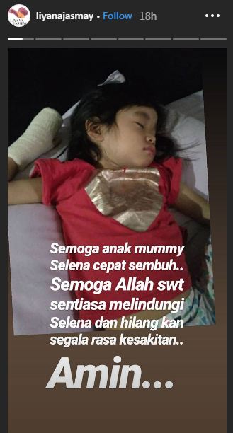 "Semoga anak Mummy, Selena cepat sembuh, semoga Allah SWT sentiasa melindungi Selena dan hilangkan rasa kesakitan, Amin.